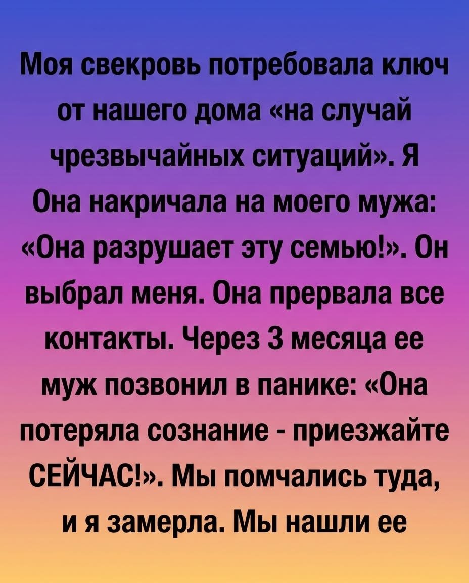 Она требовала ключ от нашего дома, ссылаясь на «экстренные случаи». Но я-то знала свою свекровь, Бренду, как облупленную. Под «экстренным случаем» она обычно подразумевала ревизию моей кладовки или инспекцию моего стирального порошка, пока я пропадала на работе. Два года нашего брака были настоящей битвой за личные границы, которую она воспринимала как изощренный вызов. «Она разрушает … Read more