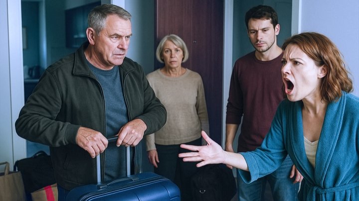 Анна накинула халат и вышла из спальни. В прихожей стояли Виктор Петрович и Людмила Ивановна. У их ног громоздились огромные чемоданы, сумки, пакеты. Свёкор, крепкий мужчина лет шестидесяти, уже снял куртку и начал затаскивать один из чемоданов внутрь. Людмила Ивановна, поправив седые волосы, прошла на кухню, будто она здесь хозяйка.