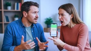 Муж дёрнулся, словно его ударило током. Лицо мгновенно побледнело, пальцы сжались вокруг телефона.