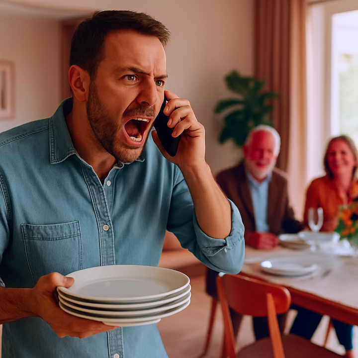 Ты где носишься?! Гости ждут, а я тут с тарелками как дурак! — кричал муж в трубку