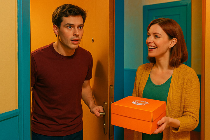 А теперь — с коробкой из кондитерской, как будто принесла извинение, запакованное в сахар и маскарпоне.