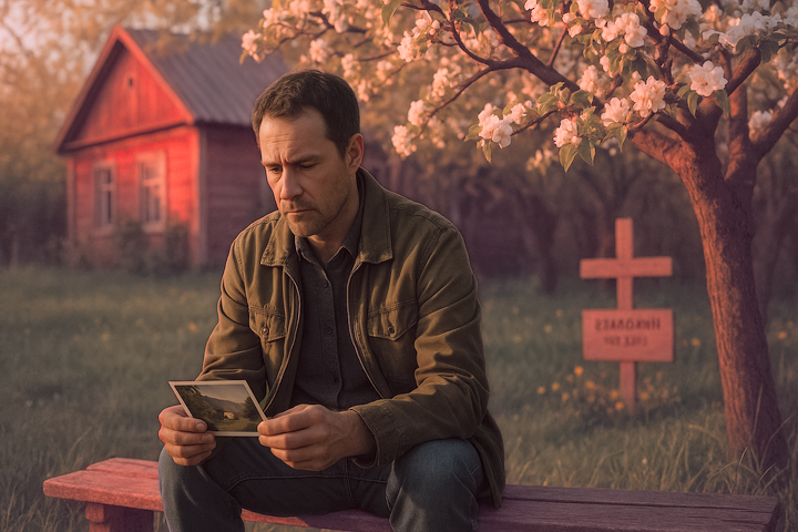 Он открывает старый альбом. На первой странице — Лена ребёнком. На последней — он сам, с матерью, сидящей под яблоней, которая всё ещё цветёт каждую весну.