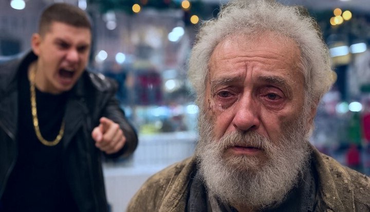 У стеклянных автоматических дверей, возле первой кассы, замерла фигура старика. Он был похож на призрака из другого, забытого мира. Потертое, залатанное в нескольких местах пальто висело на нем мешком, тонкая шея утопала в слишком широком воротнике. Седая, неухоженная борода неровно обрамляла изможденное, покрытое сеткой глубоких морщин лицо. В руках, покрытых старческими пигментными пятнами, он сжимал старую вязаную шапку. Он робко переминался с ноги на ногу, и каждый входящий порыв ледяного воздуха заставлял его вздрагивать. Его взгляд, полный глубокой, застарелой тоски, провожал людей с полными тележками — в них лежали утки в яблоках, банки с красной икрой, дорогие игристые вина. В его глазах читалась не зависть, а лишь тихая, изматывающая надежда, смешанная с едким стыдом — чувством, которое сопровождает человека, вынужденного просить о самом элементарном.